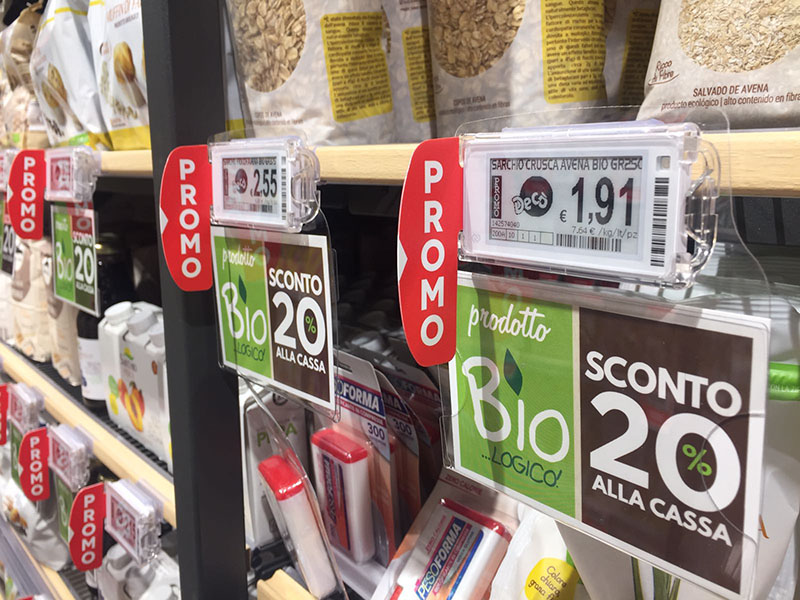 In tutti i reparti del supermercato di Catania sono state installate etichette elettroniche interattive, che forniscono al cliente tutte le informazioni sui prodotti (prezzi e promozioni) e allo stesso tempo guidano le attività del personale all’interno del punto vendita. Il led con flash multicolore, infatti, aiuta gli operatori nella gestione dello stato del prodotto e offre un supporto tecnologico durante l’aggiornamento delle comunicazioni promozionali a scaffale.